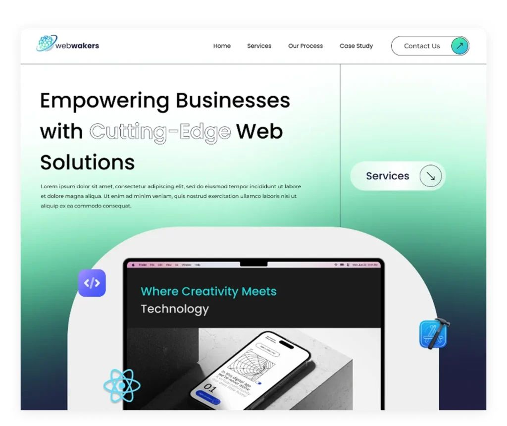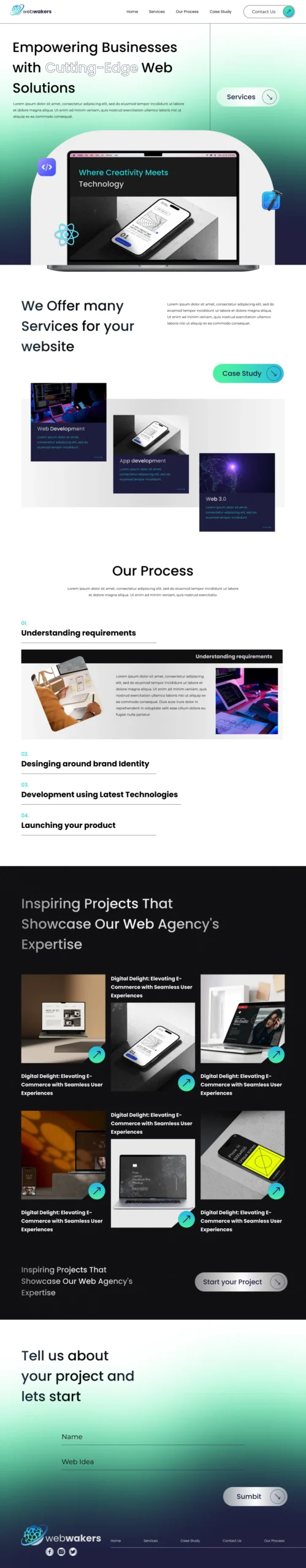 Creating a modern and unique landing page for Webmakers, offering comprehensive web services, involves innovative design and user-centric functionality